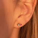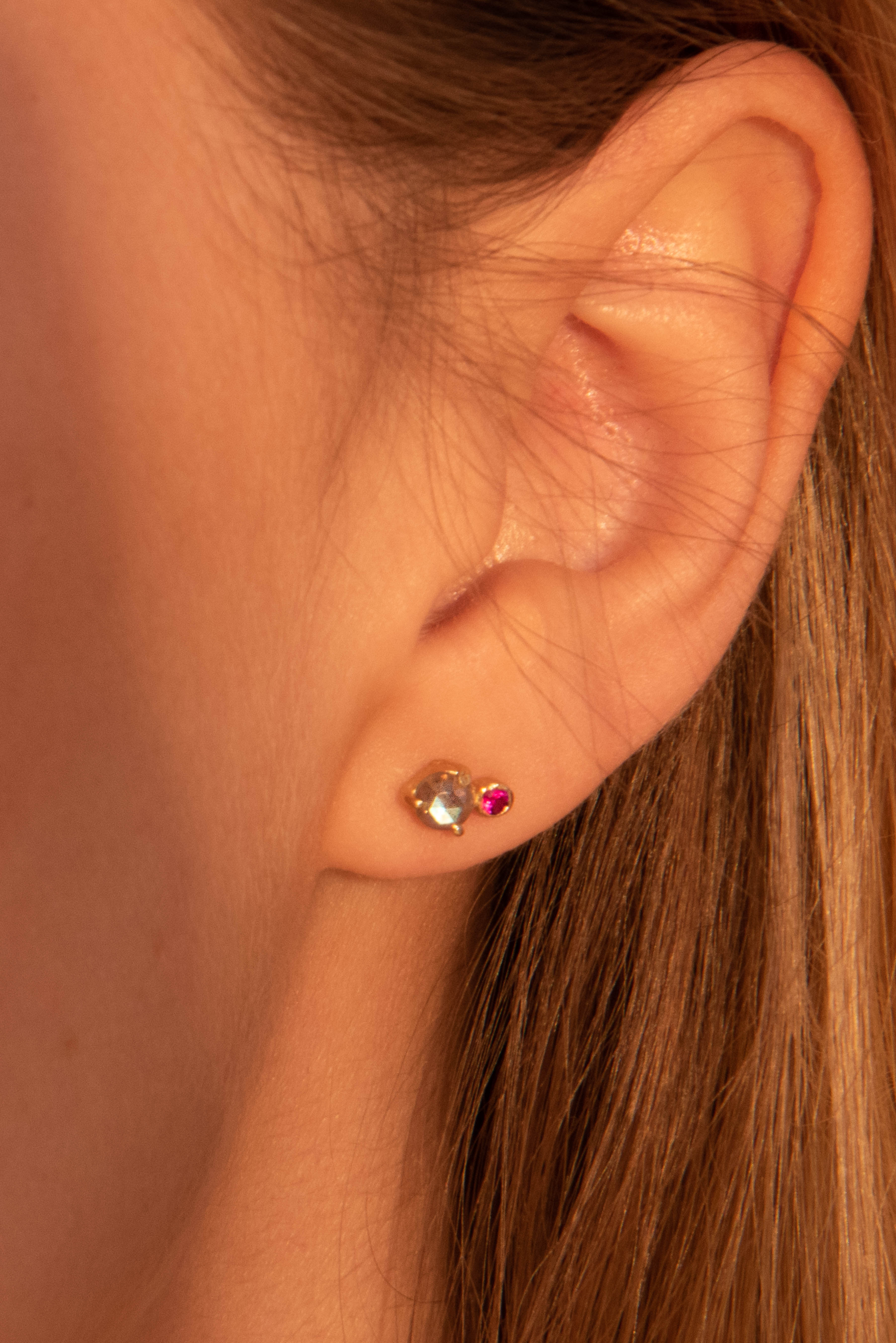 Ada - Puce d'oreille en vermeil, labradorite et rubis